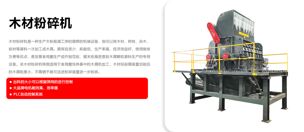 木材粉碎機(jī)是生產(chǎn)木粉前道工序的理想機(jī)械設(shè)備。它可以將木材、樹枝、雜木、板材等原料一次加工成木屑,具有投資少、耗能低、生產(chǎn)率高、經(jīng)濟(jì)效益好,使用維修方便等優(yōu)點(diǎn),是發(fā)展食用菌生產(chǎn)或作刨花板、鋸末板高密度板木屑顆粒原料生產(chǎn)的專用設(shè)備。木材經(jīng)削屑裝置切削后的木屑粒度小,不需曬干就可送進(jìn)粉碎裝置進(jìn)行下一步的粉碎。